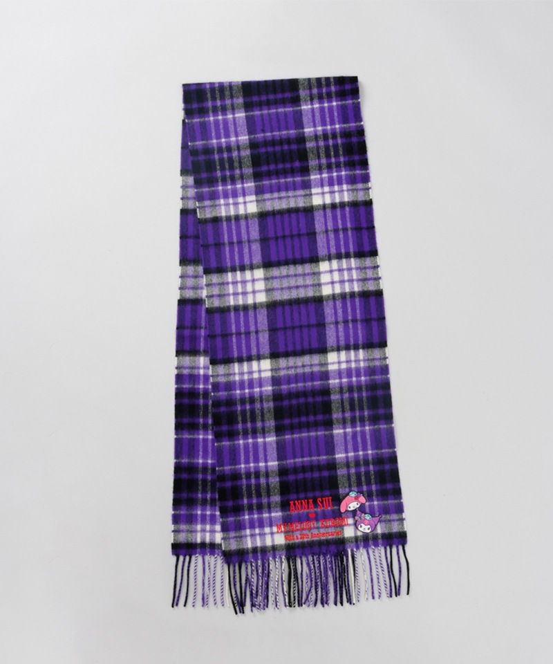 マイメロディ&クロミ 刺繍ブローチ付きチェックマフラー
